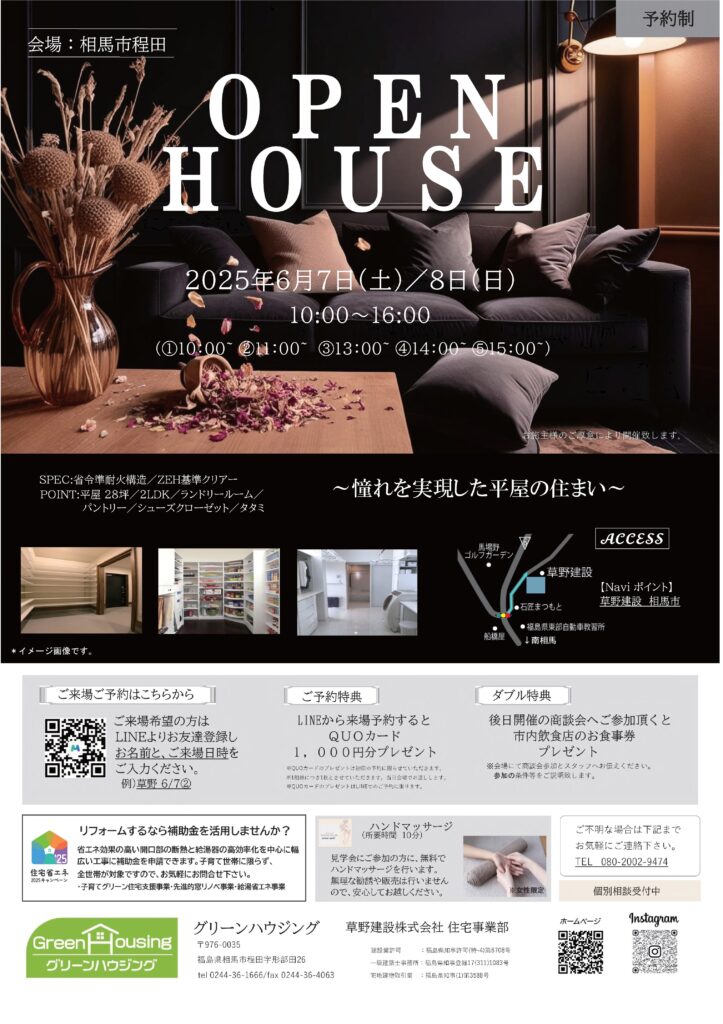このたび、施主様のご厚意により、完成見学会を開催する運びとなりました。2LDKの平屋のお家です。皆様のご来場をお心より待ちしております。