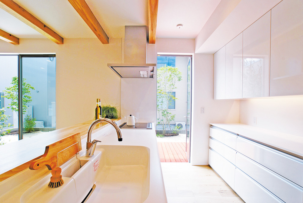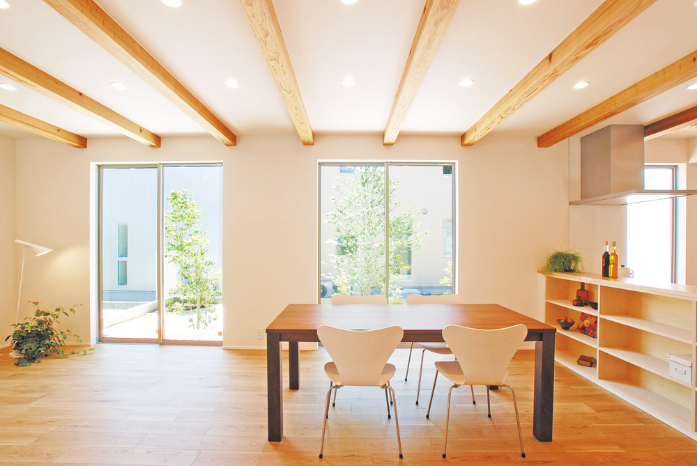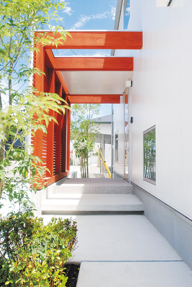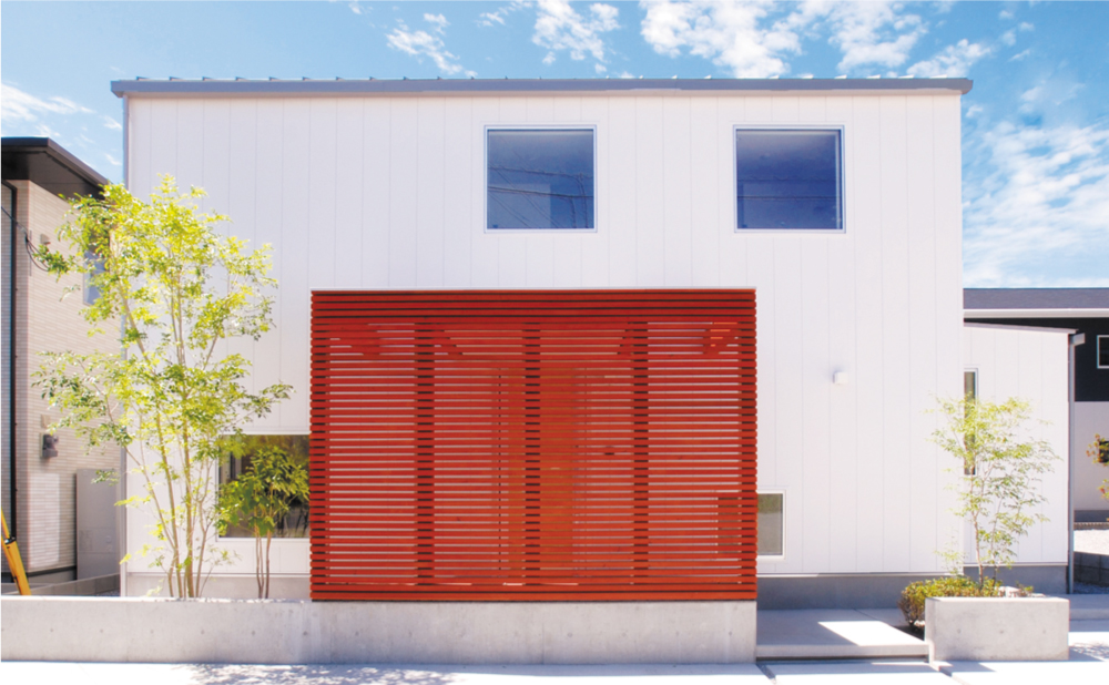 車が行き交う通りに面した土地。人通りの多い街中の土地。家づくりにはデメリットと思われるそんな場所にも、お洒落でシンボリックなファサードを設けるだけで、理想のマイホームが完成します。